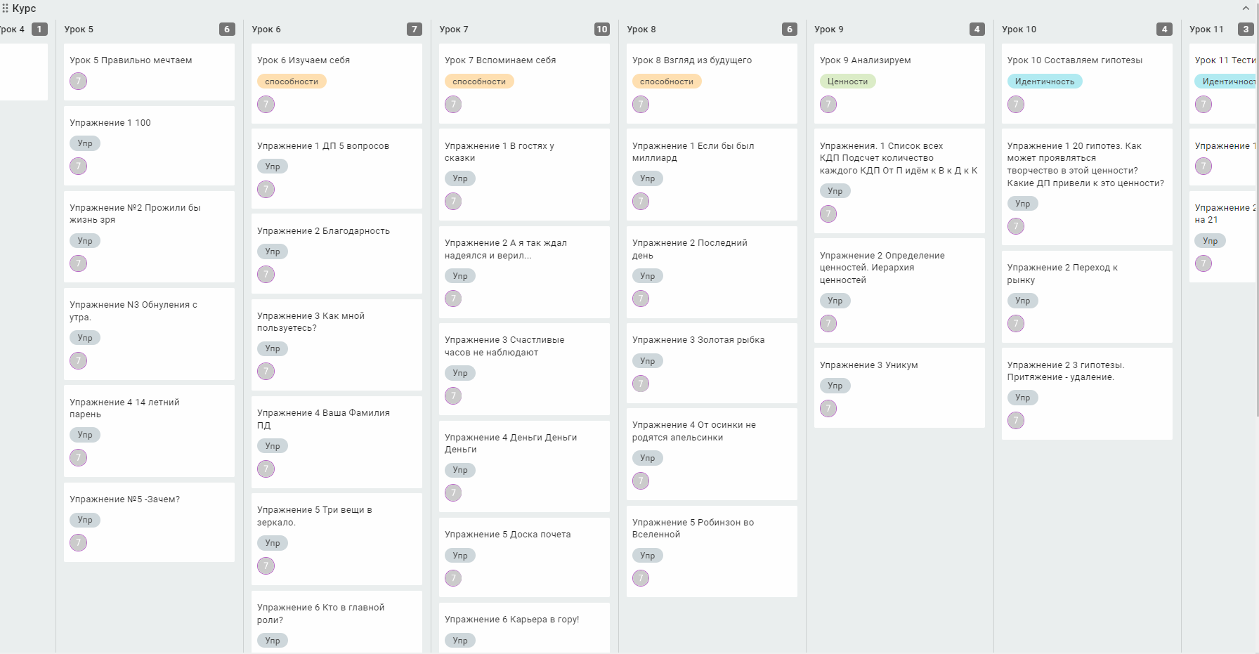 У меня есть предзаписанные теоретические видео, которые ты просматриваешь. Это обыкновенная теория, в которой я проясняю суть упражнений и то, к чему мы идём в рамках каждого шага.